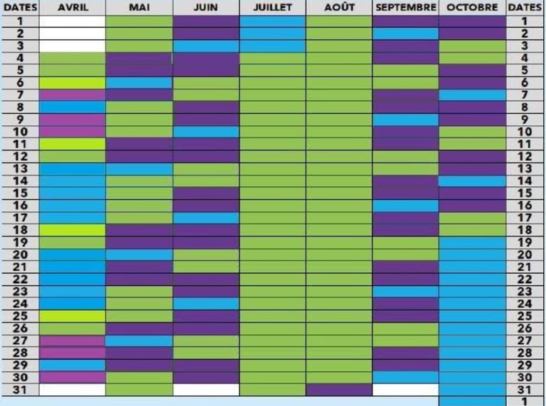 Période bleue : 2 départs par jour 14h30 et 16h00.